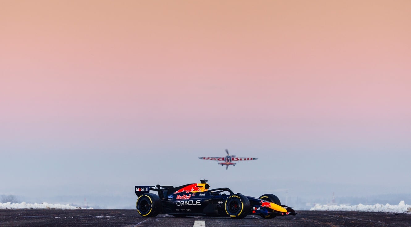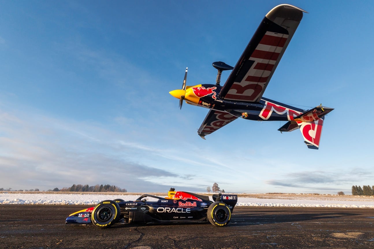 Rakouská stáj Red Bull se při představení zbarvení svého nového závodního monopostu formule 1 blýskla něčím, co královna motorsportu ještě neviděla. Plachtu zakrývající vůz RB22 (který však do prvního závodu sezóny dozná ještě razantních změn) odkryl pomocí svého akrobatického speciálu Martin Šonka. Stalo se tak na letišti v Jindřichově Hradci.