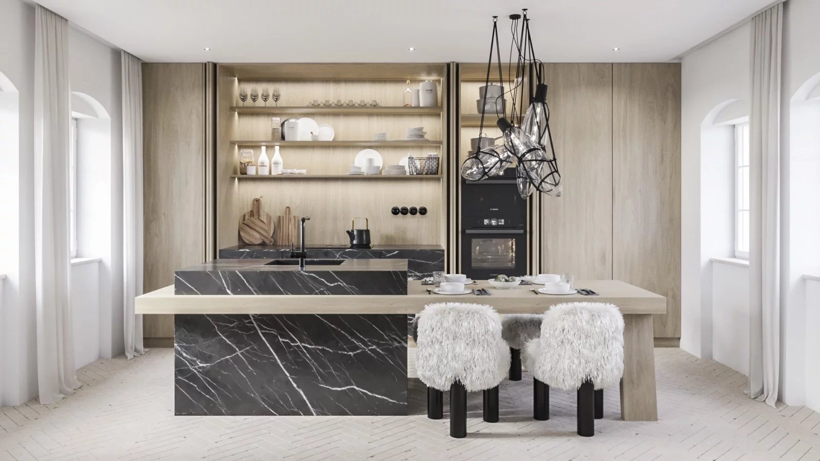 Kvůli drsné okolní přírodě tvoří konstrukci staveb betonový monolit. Hotové byty o užitné ploše lehce přesahující 140 čtverečních metrů by si první majitelé měli převzít v dubnu roku 2025. Ve Slunečné se může usídlit jedenáct zájemců, Slovanka poskytne apartmánů třináct. Poslední zbývající volný prostor pak obsadí cukrárna. Vnitřní dispozice lze před dokončením projektu upravit na přání obyvatel, vzhled interiéru si mohou vybrat ze dvou variant designu. Verzi Klasik připravila Ivanka Kowalská, zatímco Radka Šrámková jde se svým designem zase naproti všem ,modernistům‘.
